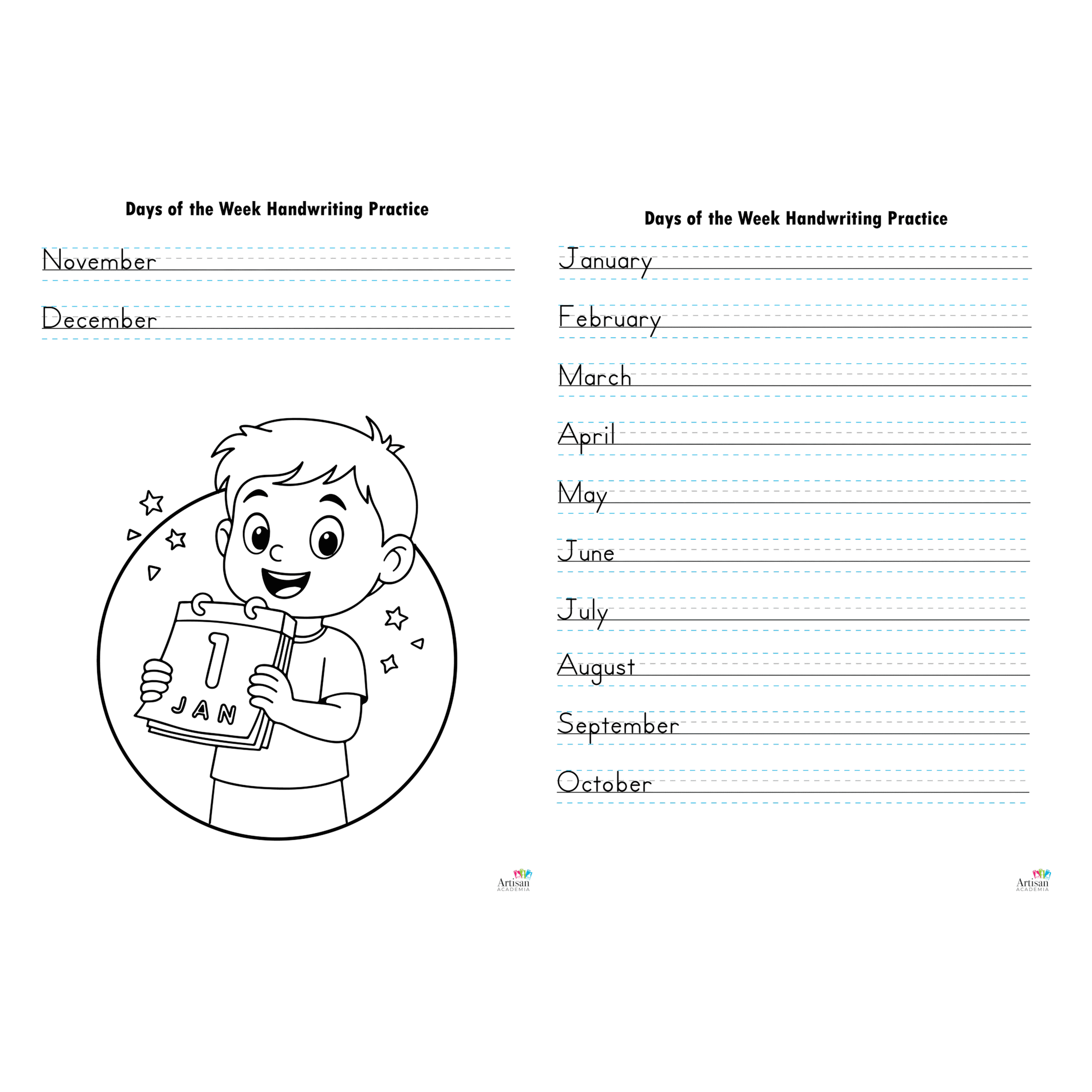 | Learning Objective / Focus | Months of the year spelling, Sequencing the months, Capital letter formation, Handwriting practice, Temporal awareness |