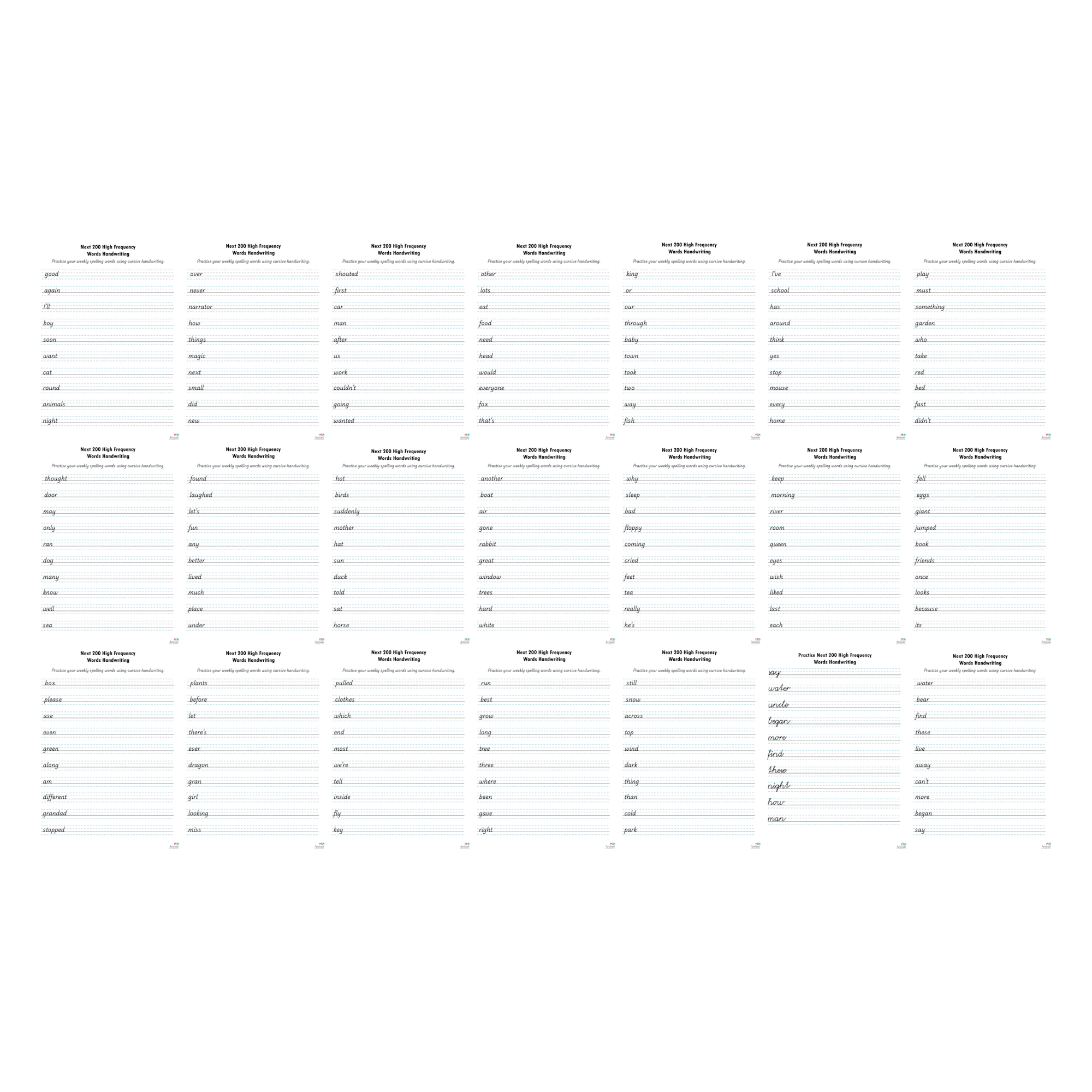 Next 200 High Frequency Words Handwriting Practice Book – Cursive Worksheets
